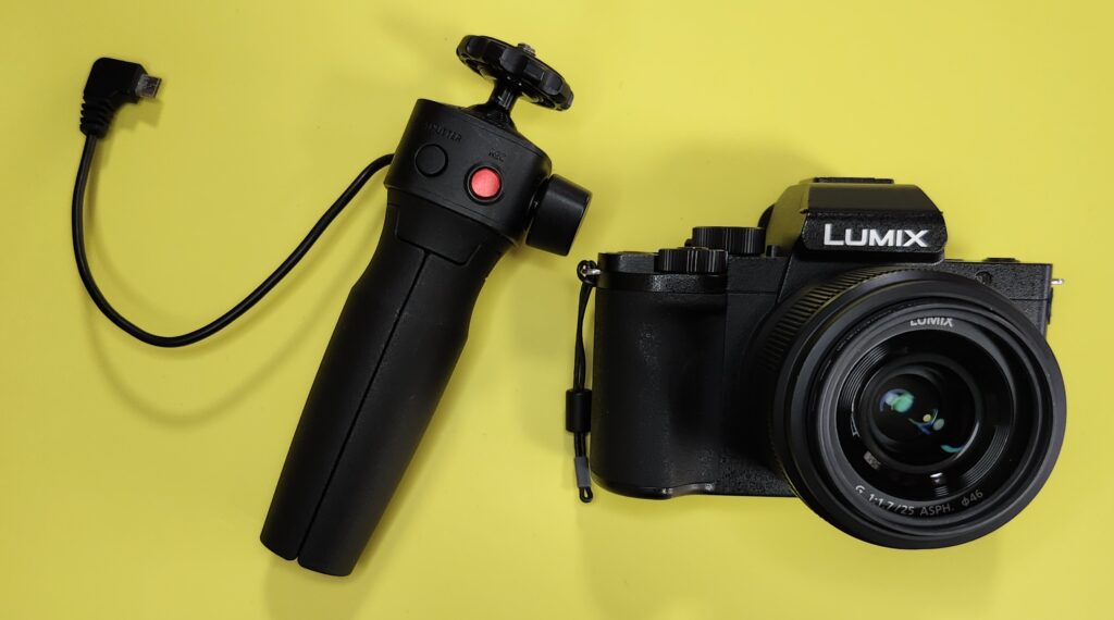 しかも、三脚にもなるトライポッド付き。自撮りもできるし、リモコンも有線だから電池いらず。地味に便利!